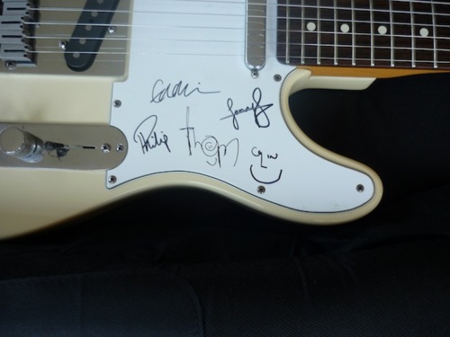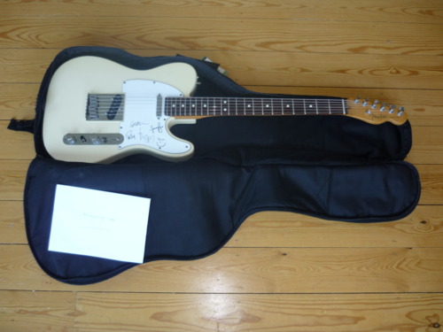 En 2011, Ed l’a mise aux enchères sur ebay pour soutenir l’association The Joseph Foote Trust. La guitare est partie pour £9,549.00. A ce prix là , elle a été signée par tous les membres du groupe :