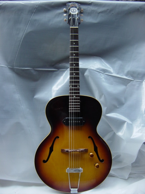 [quote ]« A very old vintage model from the 50s featuring a typical P-90 »dog ear” pick-up. Adopted by Thom since 2000, it’s now the guitar used for the songs with clean or slightly distorted sounds like Street Spirit, In Limbo (up to 2001), Optimistic, Wicked Child and There There. An ES-125 (different bridge and bolder body) is used on Go To Sleep.“[/quote]