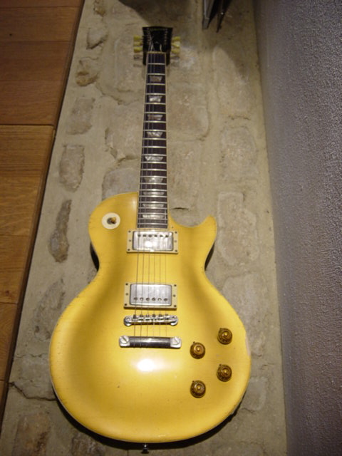 [quote cite=’1 novembre 2006 / Blog de Plank’ align=’none’]Whilst out and about yesterday, I had the pleasure of looking at and playing a genuine 1957 Gibson Les Paul Goldtop, surely one of the best guitars ever made, it just sounds and feels great!, now very rare and a tiny bit expensive……………Gibson are doing a vintage old stock ’57 re-issue, which is meant to follow the original very closely – I hope to try one out next week – it will be nice to be able to do a comparison with the real thing to see just how good they are……………….. time to go as all has gone quiet next door, except for a large buzzing noise……………. pic is of ’57 Goldtop. 🙂