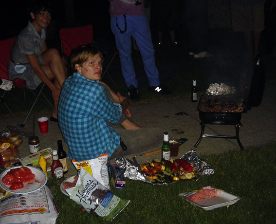 Le barbecue de la veille a fait une grande impression on dirait, tout le monde parle de Camp Grizzly et nous prévoyons de renouveler l’expérience ce soir. Jonny, qui regarde pratiquement le set de Grizzly Bear tous les soirs depuis la scène, décide d’aller les voir jouer dans le public cette fois. Avec un énorme chapeau sur la tête, il passe incognito et peut suivre le concert au milieu de 25000 personnes. Le concert de Radiohead remporte à nouveau les acclamations du public avec probablement la meilleure performance de Wolf At The Door. Kid A est joué pour la première fois depuis le début de la tournée, Thom York joue à nouveau Cymbal Rush seul au piano et Idioteque conclut le concert. Aussitôt je rejoins Camp Grizzly ! Le grill est déjà prêt. Rapidement, Jonny, Colin et Ed nous rejoignent. Colin et Jonny nous font part de l’admiration du groupe pour la musique de Grizzly Bear, un compliment qui n’a pas de prix ! Colin plaisante en ajoutant qu’il aime beaucoup les vêtements colorés que le groupe porte sur scène.