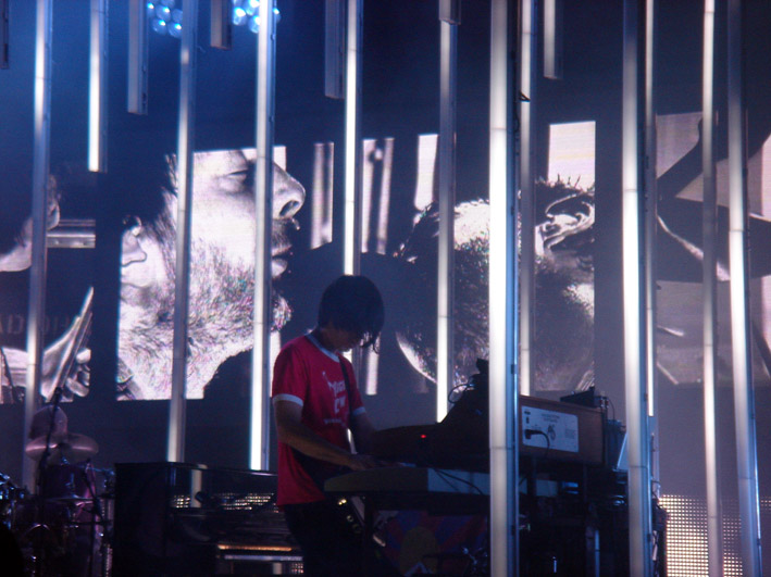 Grizzly Bear joue un set impeccable devant son plus grand public à ce jour. Plus de 30 000 personnes, sous un magnifique couché de soleil. L’accueil est très bon. Peu avant la fin du concert, la pluie s’arrête, un arc en ciel apparaît. Un peu plus tard, Radiohead entre en scène. Encore une fois, le set est parfait. Thom Yorke semble cependant un peu derangé par les feus d’artifice qui prennent place sur un coté de la scène, puis ensuite derrière la scène. Apparemment il y avait une compétition de feux d’artifices à Montréal ce soir là .. (on m’a dit que les italiens avaient gagné).