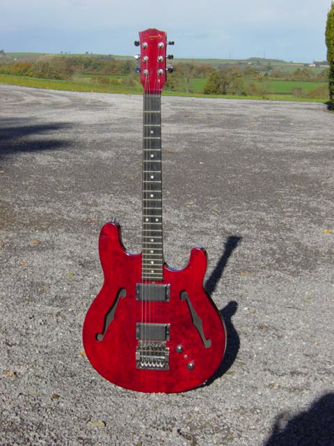 Cette guitare a été “fabriquée” par Plank, le technicien préféré du groupe, à partir de plusieurs autres guitares. La caisse semi-acoustique vient certainement d’une rickenbacker, et le manche d’une gibson.