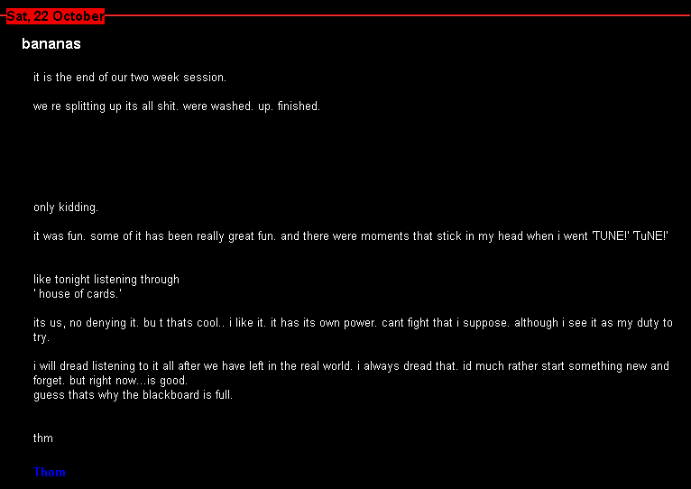Par le biais du dead air space, le blog tenu par le groupe, on apprit que la chanson avait été retravaillée en octobre 2005.