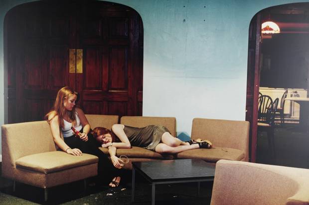 “Well, of course, this is a very typical scene for me. I’m in a band called Radiohead and this is like after the show — the Radiohead dressing room and some of the fans come back to room to see the band, and of course the band have all gone home as early as possible. The light is very similar to that kind of thing. It’s a very hard light and there’s a general mess all over the floor. Of course they’ve made this mess — we would always clean up the mess after we’ve made it. This is a kind of place where I spend a lot of my life, unfortunately — those seventies corner suites pock-marked by cigarette burns and formica table tops and plastic cups spilling out crushed crisps and cigarette ends onto the tacky brown carpet. But saying that this could be someone’s home so I don’t want to be that cruel.”