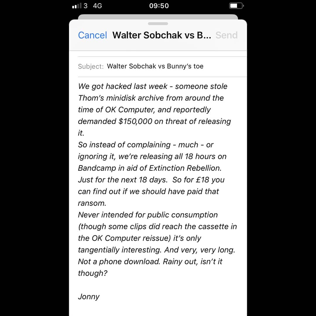 Jonny a lui aussi communiqué via le compte instagram du groupe  en précisant les intentions non mercantiles du groupe et en confirmant les propos de Thom sur le contenu, très long et “tangentiellement intéressant” et disponible pour une durée limitée.