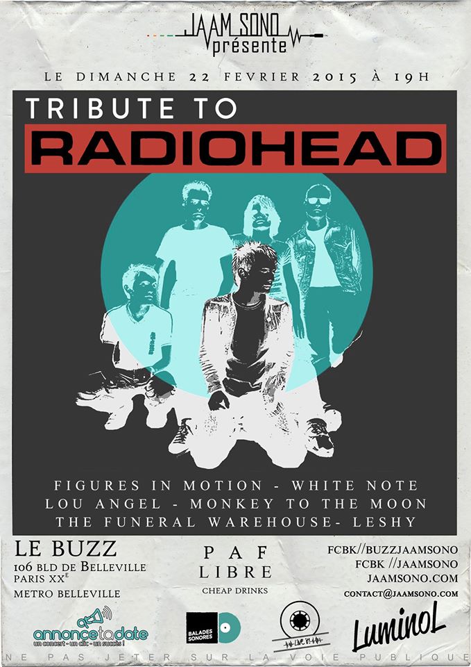 Pour les Parisiens, les voyageurs munis de tapis volants, les abonnés à la SNCF, les routiers….une soirée Tribute to Radiohead: on y court! Et nos amis de Figures in Motion y seront (enfin, tous les participants sont nos amis par définition s’ils jouent du RH!)