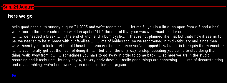 En septembre 2005, du 19 au 30, le groupe est en studio pour travailler sur de nouvelles chansons.