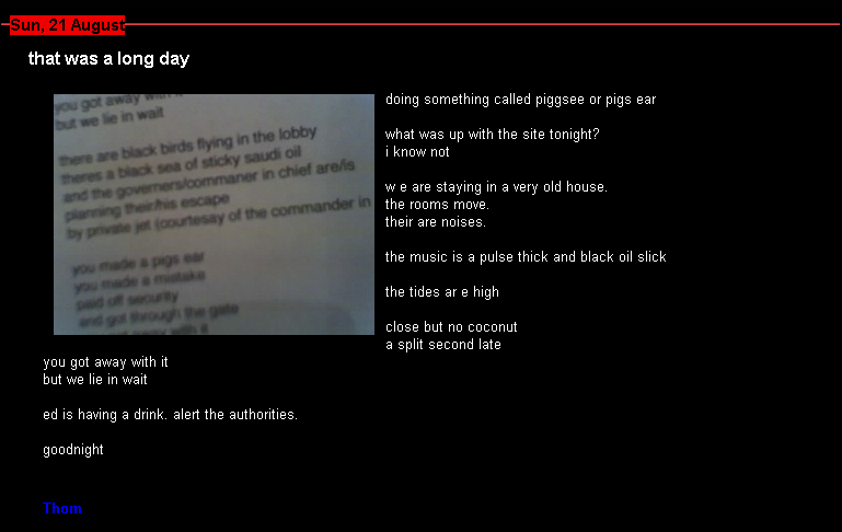 Thom semble en recherche des paroles, comme en témoignent ces textes postés sur le site officiel du groupe.