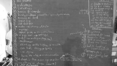 La photo d’un tableau noir contenant le titre d’une vingtaine de titres de chansons (dont beaucoup inconnues !) que le groupe répétait à ce moment là , est postée sur le blog du groupe, et on peut y lire le titre de « a pig’s ear » :