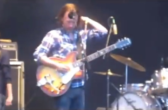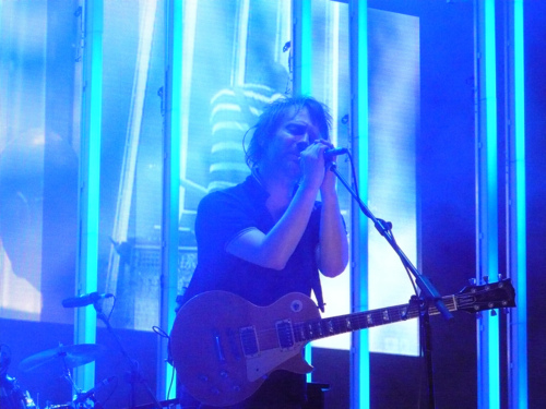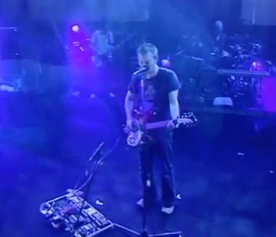 On le voit en jouer sur Karma Police dans Meeting people is easy par exemple. (Vers 17:11) L’extrait provient d’un passage du groupe dans l’émission Colbert Report :