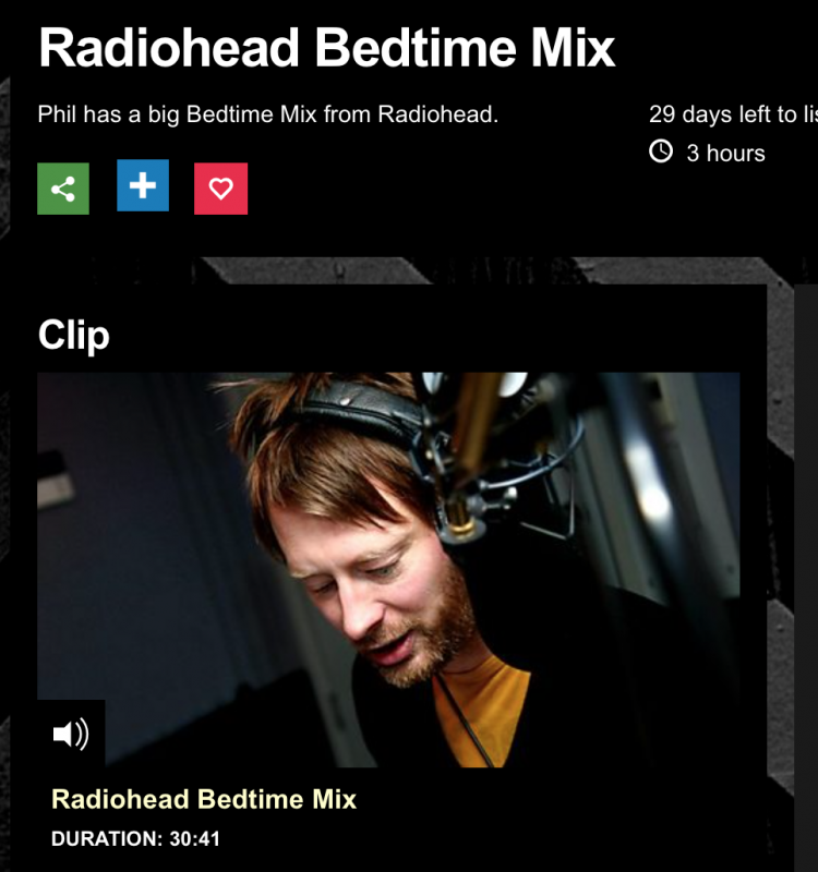 Pour la BBC Radio 1, Radiohead (Thom Yorke) a concocté une sélection pour dormir (BED TIME MIX).