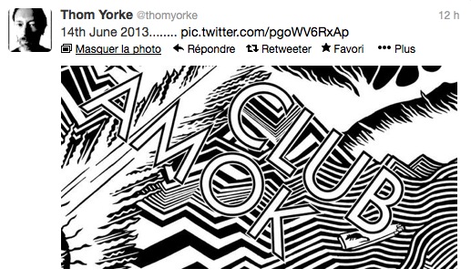Mais dès ce matin, toute la petite bande, à commencer par Joey Waronker, a tweeté la même chose: un mystérieux artwork, puis Thom a achevé d’intriguer en annonçant “14th June…Amok Club”.