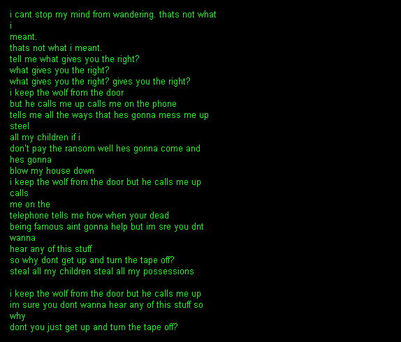 [quote cite=”Thom Yorke / Official Hail To The Thief Interview CD, avril 2003”]It was quite weird. That song’s been kicking around for a while and I not really thought about how violent the images were for ages, until we came to trying to put the record together working out where it went. And I was also typing up the words for Stanley. And suddenly I was like ‘wow, this is pretty bitter stuff’. You know, all the stuff about ‘cold wives and mistresses, cold wives and sunday papers, city boys in first class’, all that stuff. I was like ‘bloody hell, that’s pretty serious’. I guess it’s just very, very angry, cause I couldn’t help it, really. A good place to put anger in is in music. I think better than a lot of other places. But again, the crazy thing about it is, I’m only able to put the anger in that song, because the melody itself is so sweet, you know. Jonny wrote this really sweet guitar melody. Where the words came from was just… that’s just where they came from. I mean, it wasn’t… I wasn’t even thinking that I was angry. I mean, I was just feeling like I was going a bit mad. So, I’m used to that now, I go through phases like that. But that was a particularly bad one. But you know, we were kind of reluctant to put it on the record for ages, because it was just so… we end every record with a nice sort of ending. But really, this wasn’t… the whole atmosphere and where this whole record comes from, is not that. It would have been false to do that. In the record there’s a lot of sort of fairy tale, children’s story things going on in it. And then that one at the end… again, it’s obviously a wolf at the door and so on, but it’s kind of the most sort of ordinary life, realistic place in the whole record. And it’s sort of like waking you up at the end, really. And waking you up is something really not that pleasant. Rather than waking you up and it’s like ‘uhh, it’s all been a lovely dream’… no, it’s all been a nightmare and you need to go and get a glass of water now. You know, that’s kind of what it is.[/quote]