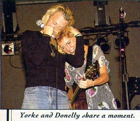 C’est le jeune groupe radiohead qui est choisi pour en assurer les premières parties (cf photo). les deux groupes s’entendaient extrèmement bien, et Belly a énormément appris de choses à la troupe de Thom Yorke. En général, pour la dernière chanson du set de Belly, Thom montait sur scène, et chantait en duo avec Tanya une chanson qui s’appelle ’Untogether’.