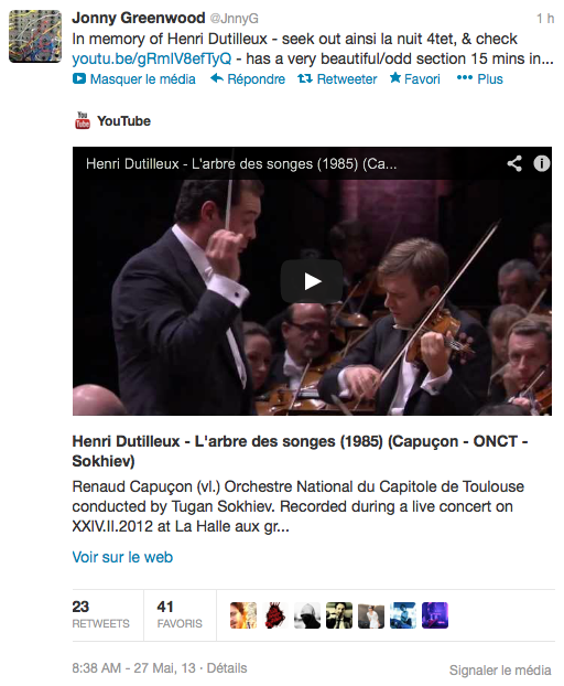 Le 27 mai, Jonny rend hommage au compositeur sur son compte twitter :
