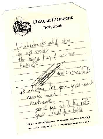 Le groupe “entre en studio” pour enregistrer le futur album « Hail To The Thief », à the Ocean Way Recording (Hollywood, Los Angeles). Ils n’y resteront que deux semaines… qui sont plus rythmées par des fêtes que par des sessions de travail. Sur une page de la partie « scrapbook » du site radiohead.com, on pouvait voir un peu plus tard cette note griffonée par Thom alors qu’il est à Los Angeles :