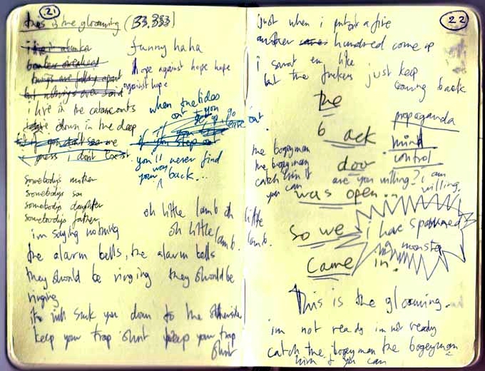 A la même époque, un scan d’une autre page du carnet de notes de Thom est posté dans la partie ’scrapbook’ du site radiohead.com. On peut y remarquer la mention de l’ancien titre, et le travail qui a été fait sur les paroles :