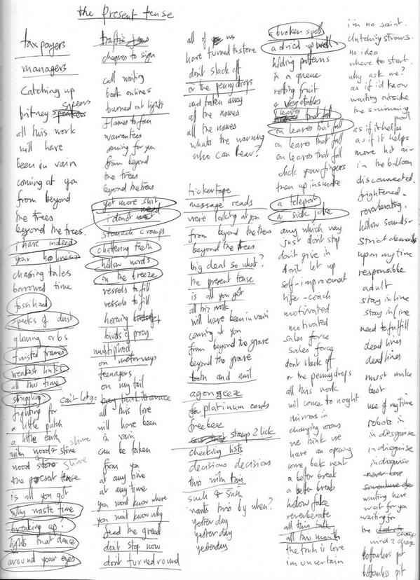 Thom Yorke poste sur Twitter une extraordinaire page de paroles ayant préludé à l’écriture de « The Present Tense »… ce qui signifie qu’il s’y recolle et c’est une très bonne nouvelle pour tous ceux qui pensent que cette chanson est une des plus belles qu’il ait écrite !